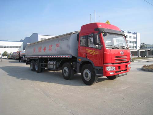 | 解放前四后八加油車罐體有效容積:25.5立方米.罐體外形尺寸(長×寬×高)(mm)9100×2400×1540。運(yùn)輸介質(zhì):汽油,密度:700千克/立方米。隨底盤選裝平頂駕駛室。 |