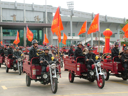 由于資金有限,這些隊(duì)伍除了配備正式的消防車外,還配備拖拉機(jī)簡易消防車45部,三輪消防摩托車40部等。消防人員介紹,這種消防隊(duì)更多的是集中在一些鄉(xiāng)鎮(zhèn)和農(nóng)村,這些裝備更適合農(nóng)村的地理環(huán)境,在滅火搶險(xiǎn)救援中發(fā)揮著靈巧、迅速的作用。
